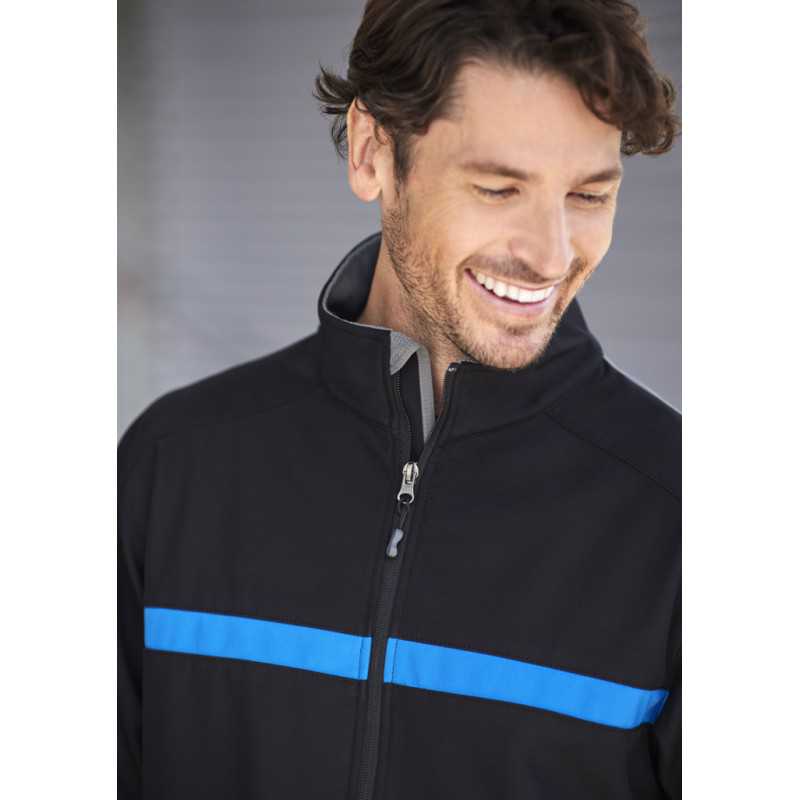 Grid mesh underarm panels for breathability,Stow-away hood with print feature,Unique sleeve print feature with adjustable cuff,Two side zippered pockets,Contrast panels, piping and inside placket. Fabric: Outer Shell: 100% Polyester Jacquard,Lining: 100% BIZ COOL anti-snag diamond mesh,UPF rating - Excellent.