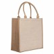 High quality environmentally friendly large laminated jute shopping bag in natural colour, with padded cotton handles and seamed edges. A great promotional bag for your event.