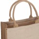 High quality environmentally friendly large laminated jute shopping bag in natural colour and coloured handles and gusset, with padded cotton handles and seamed edges. A great promotional bag for your event.