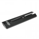 Retractable aluminium ballpoint pen with a lacquered barrel and shiny chrome accents. It has a large volume refill with 1200 metres of black German manufactured Dokumental ink. Panama can be presented in an optional pen sleeve or a gift box. The black and white pens have the option of blue ink.