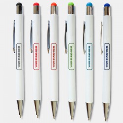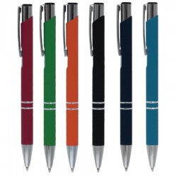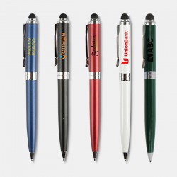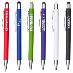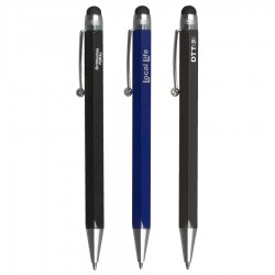 Click action metal pen with unique rubberised finish comes with black ink. Pen features matching stylus tip. Each pen engraves to expose a stunning mirror finish.