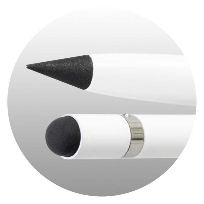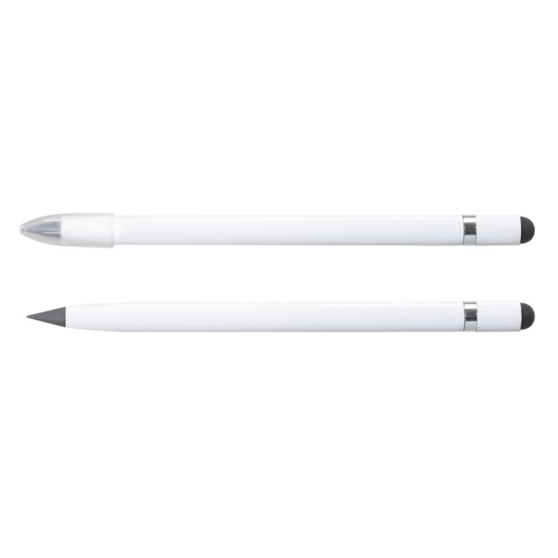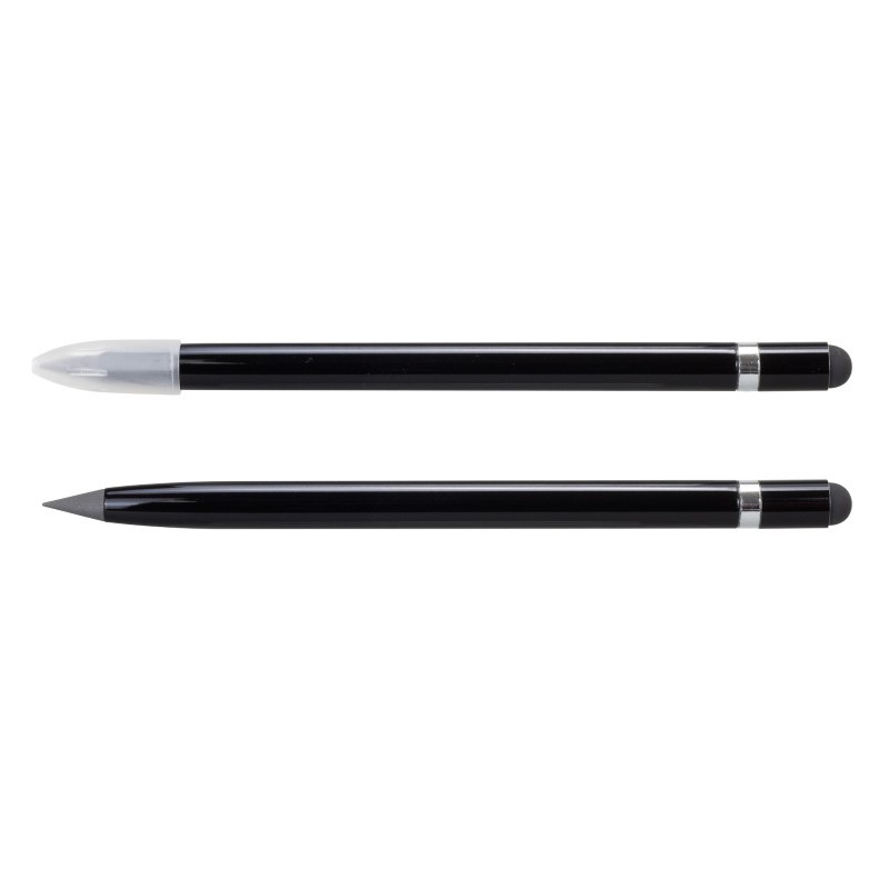 The aluminium Infinity Inkless Pen has a unique metal alloy tip that deposits small amounts of metal onto the page and has a writing distance of up to 5000m. This pen features shiny chrome trim, a stylus and an eraser. With no sharpening or refills needed, this is an excellent environmentally conscious option.