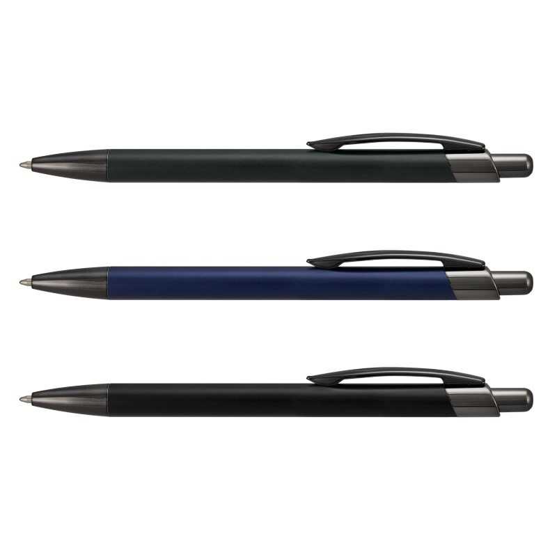 Click action metal pen with unique rubberised finish comes with black ink. Pen features matching stylus tip. Each pen engraves to expose a stunning mirror finish.