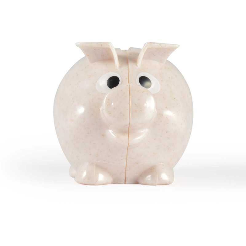 Large piggy bank manufactured from Polypropylene and Wheat Husk with a removable plug in the base so it can be reused many times.