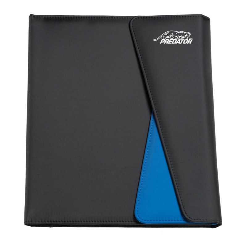 Professional PU leather portfolio with a magnetic strap closure. It comes with an A4 lined pad, one main pocket, five business card holders, and one pen loop. It is presented in an individual black cardboard sleeve.