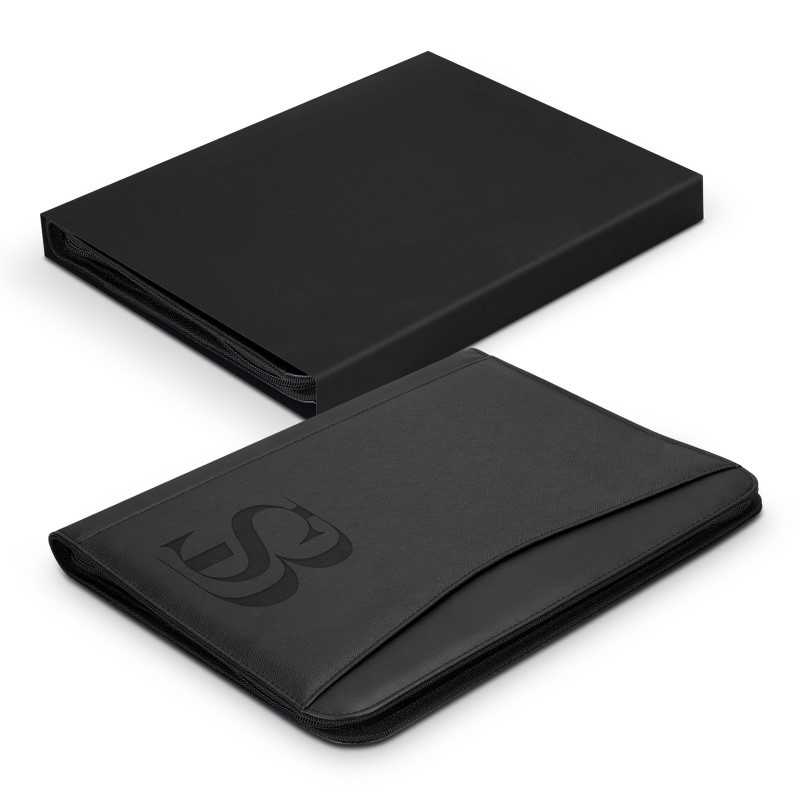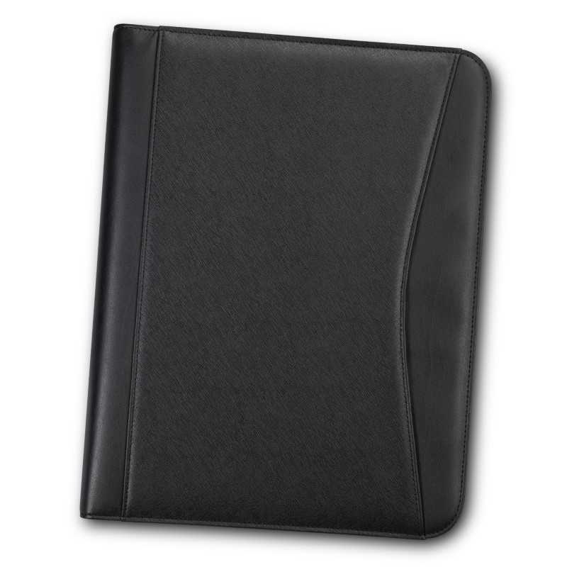 This soft grain finish A4 portfolio with an outer zip closure is designed to keep your contents secure. Your logo can be printed onto the portfolio or engraved on the brushed chrome accent plate (optional). Features include a soft grain finish outer, micro-fibre inner, outer zip closure, brushed silver accent plate, note pad (30 pages), pen loop, internal...