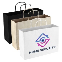 Extra-large paper carry bag with strong paper rope handles. It is manufactured from 190gsm kraft paper and can be branded with stunning edge-to-edge spot colour or full colour printing on all sides including the base. A production lead time of 35 working days applies to this product by air freight and larger orders can be sea freighted on request to...