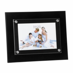 Holds 6" x 4" photos. Chrome finish with black trim. Suits portrait or landscape photos.