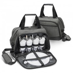 Classically designed four person picnic bag which is manufactured from poly-canvas that has an on-trend, heather style fabric finish. It has a large zippered cooler compartment which is lined with thick PE foam insulation encased in a water-resistant PEVA inner liner. The side compartment has a zip around closure that allows it to open out to 90 degrees...