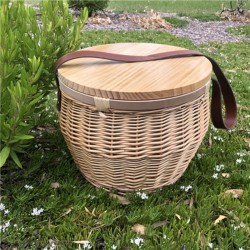 A great promotional cooler basket for any picnic and party, round shape handmade wicker basket with inside insulated silver lining and a zippered canvas closure, which keeps drink and food cool. The lacquered pine wood lid can be used as a small table for food and drink, but not recommended as a cheese board. Each board is individually unique and they all...