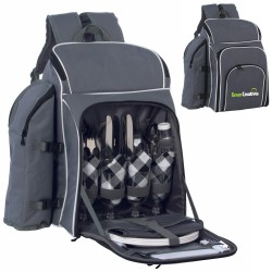 Superb four person picnic backpack which is manufactured from poly-canvas that has an on-trend heather style fabric finish. It has a large zippered cooler compartment at the front which is lined with thick PE foam insulation encased in a water-resistant PEVA inner liner. The rear compartment has a zip around closure that allows it to open out to 90...