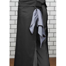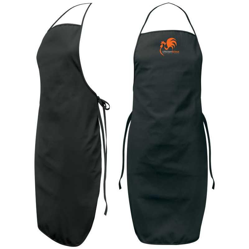 Full length Continental style with fold over waist,Unique styling,Towel loop at back of apron,1 Large central front pocket with special side slide pen and bottle opener provision,Front centre split for ease of movement,Free size 86cm x 86cm (33.9in x 33.9in),Available in Black only. Fabric: 65% Polyester, 35% Cotton Twill,190 GSM.