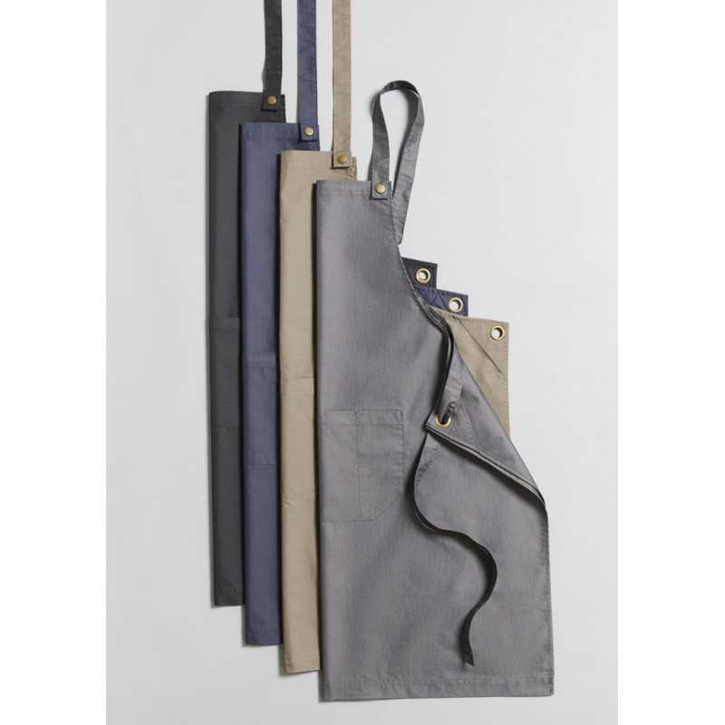 Fashion inspired 280gsm denim apron with metal eyelets and a pocket on the front.