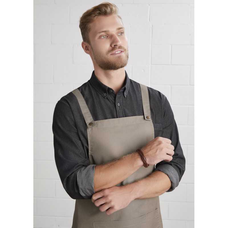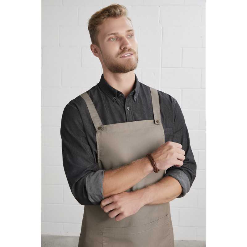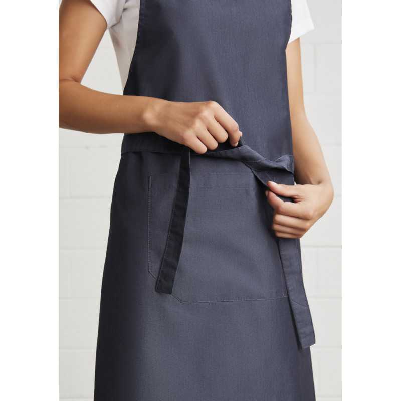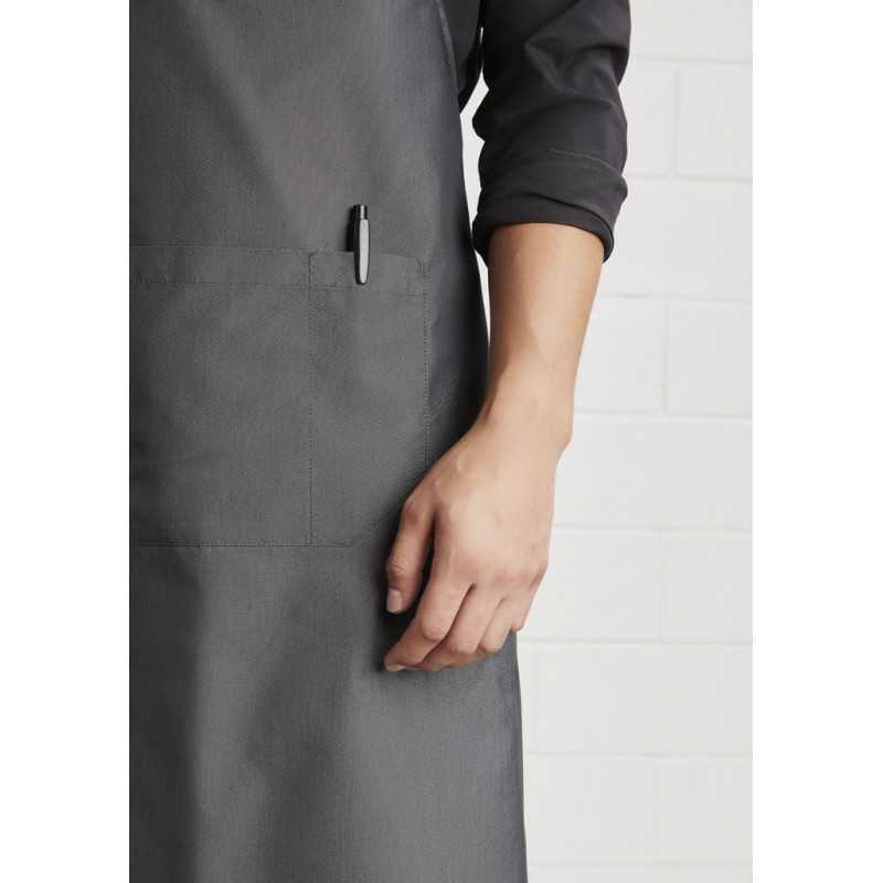 Entry level bib apron which is manufactured from 180gsm cotton twill. It has an adjustable neck strap to ensure a perfect fit and a large pocket on the front.