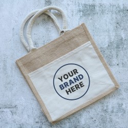 Make a sweet and subtle eco-friendly statement with the Promo Brands Jabali Tote Bag. Featuring a cotton pocket for clean and effective branding, you will adore the overtones of environmentalism when you replace plastic with this stylish jute custom tote bag. With every 100 units sold, a native tree is planted in Australian soil for an added sense of eco....