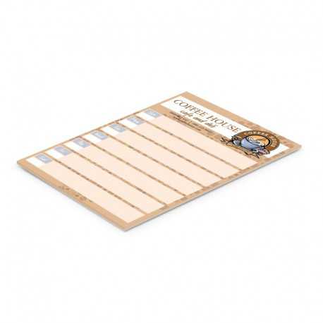 Very affordable A7 note pad with 50 leaves of quality 70gsm paper and a cardboard back. It is printed using four colour process, which gives the option of unlimited spot colours or stunning full colour at no extra cost. PMS colour matches are only approximate. Edge-to-edge printing is available and a lead time of 20 working days applies to this product....