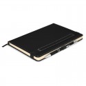 Superb medium-size notebook with 80 leaves(160 pages) of 80gsm lined cream paper and a hard cover with an antique PU finish. It has a bookmark ribbon and an elastic closure band with a unique branding strip. Premier has a cardboard storage envelope on the inside back cover, and the front cover thermo debosses to a stunning two-tone finish. Each notebook...