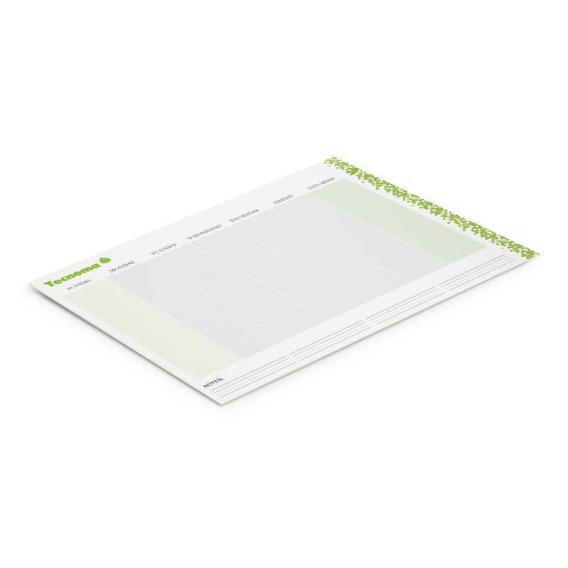 Desk planner pad with 50 leaves of quality 70gsm paper and a cardboard back. It is printed using four colour process which gives the option of unlimited spot colours or stunning full colour at no extra cost. PMS colour matches are only approximate. Edge-to-edge printing is available and a production lead time of 20 working days applies to this product....