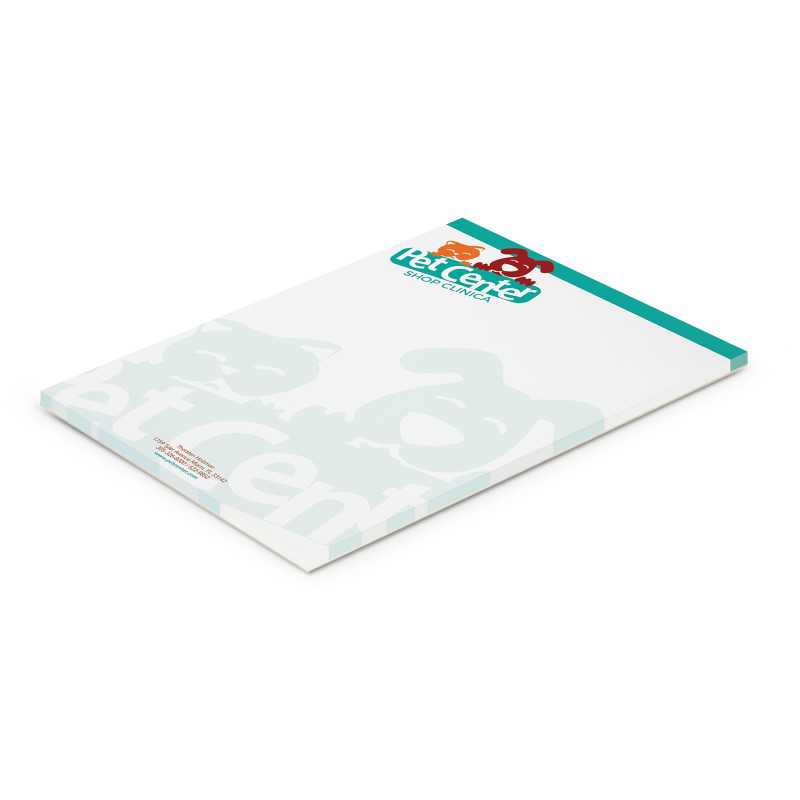 Letterhead size note pad with 50 leaves (100 pages) of good quality 70gsm paper and a cardboard back. It is printed using four colour process which gives the option of unlimited spot colours or stunning full colour at no extra cost but PMS colour matches are only approximate. The artwork can bleed off on all four sides and lines or a sketching grid can be...