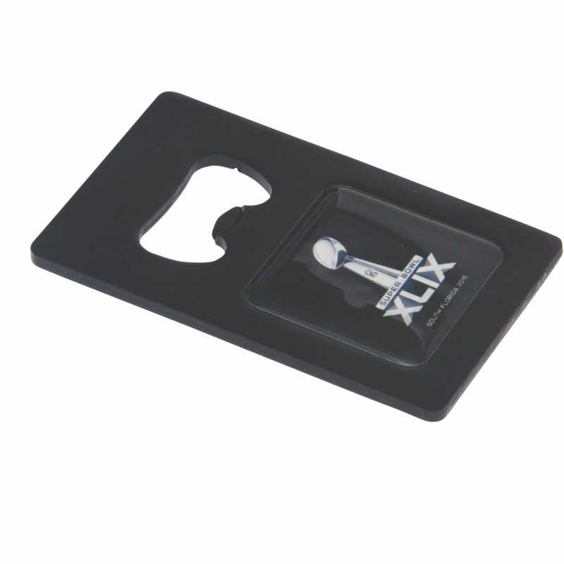 Stout is designed to open both bottles and cans with ease. Featuring a swivel keyring attachment and high gloss chrome finish. Your logo is printed in full colour and protected by a clear UV resistant dome.