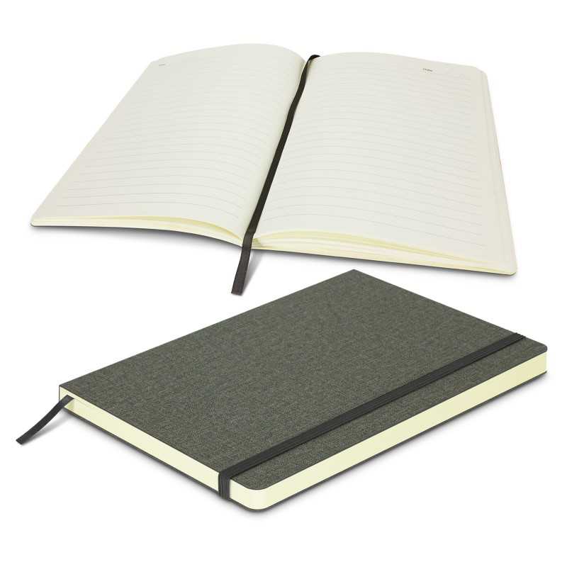 Ottawa is crafted from 2-tone fabric feel polyester with contrast stitching. Featuring 3 card pockets as well as pen loop (pen additional) and ribbon marker, this sophisticated A5 notebook will be appreciated by all. Notebook Gift Box is optional extra - see W17