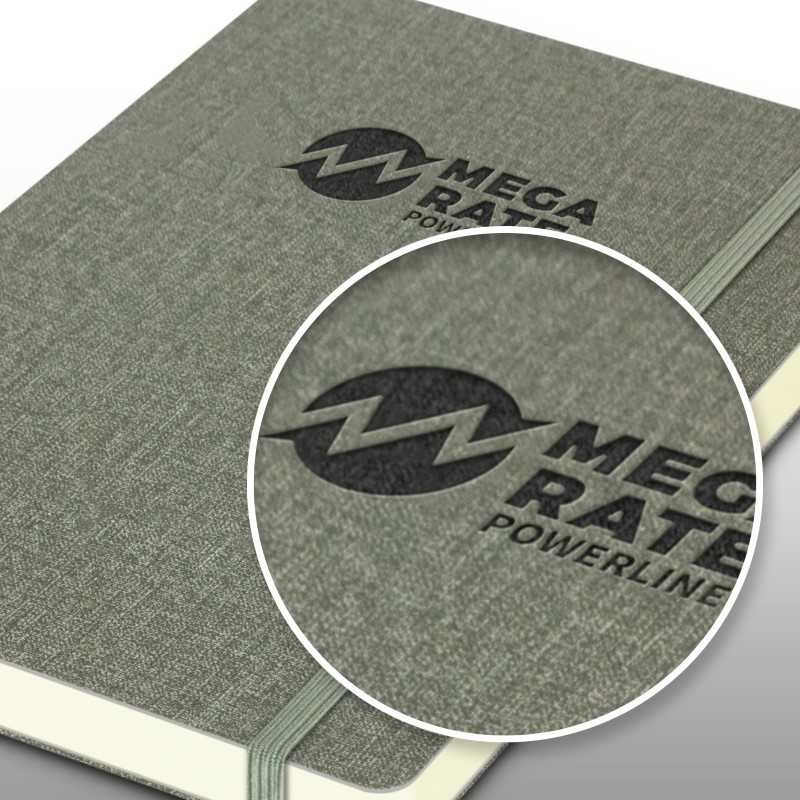 Montreal A5 Notebook truly raises the bar when it comes to both quality and style. Featuring a pen sleeve (pen additional), magnetic closure and textured linen surface, this notebook will surely make an impact. Available in black or navy. Notebook Gift Box is optional extra - see W17. If youre after a debossed notebook, check these out!