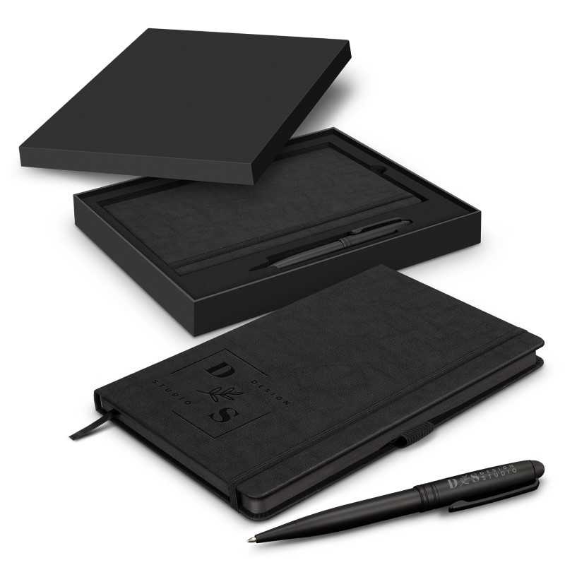 At our company, we offer a variety of Promotional Notebooks, including the Onyx Writing Set. The minimum order quantities (MOQ) can vary based on the specific product and the decoration technique you choose whether it's printed or decorated.