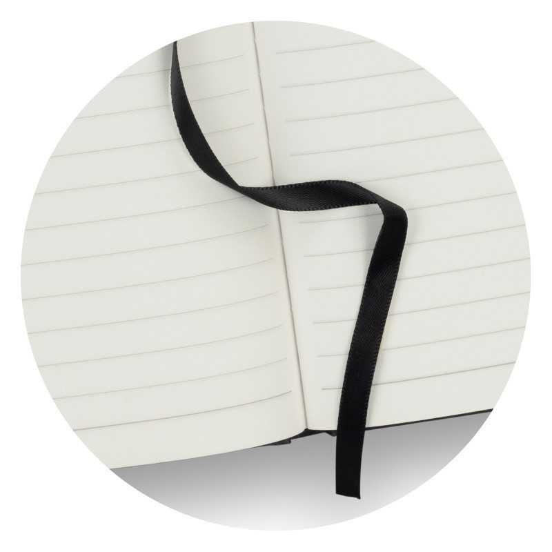 This quality A5 notepad features a soft leather-feel cover, elastic closure, ribbon marker and cream coloured lined pages. Available in black, navy and white, all with black elastic. Optional Gift Box W17 available. If youre after a debossed notebook, check these out!