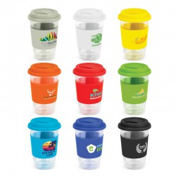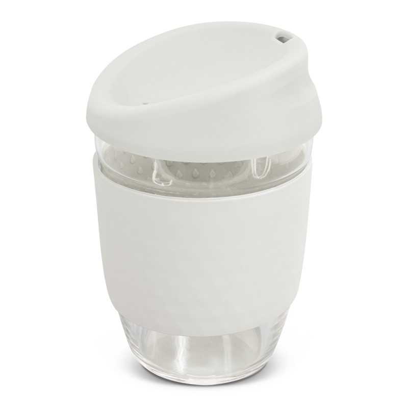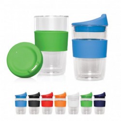The 300ml double-walled glass Cup2Go provides for excellent return on investment. An everyday item that has the potential to be used ALL day; in the home or office without the lid or in the car with the lid installed, it also provides a clean taste and is an exceptionally hygenic material. Logos can be printed on the silicone band.