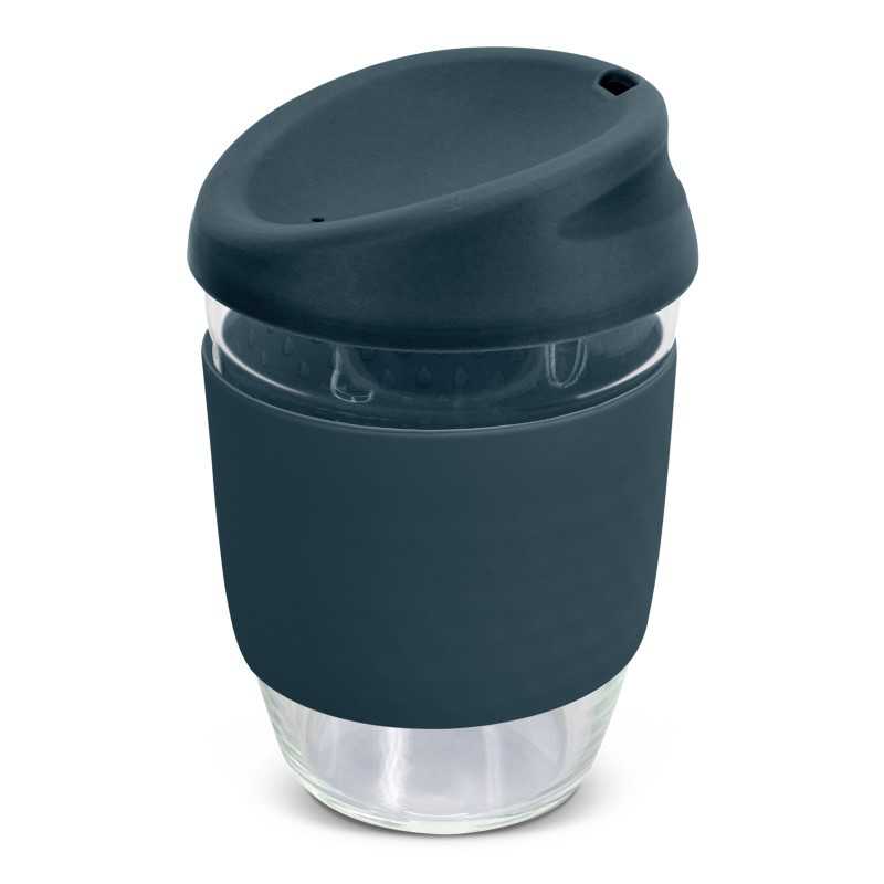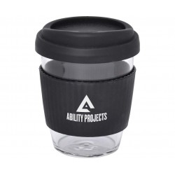 Elegant 250ml reusable borosilicate glass coffee cup with a secure push on plastic lid with silicone seal and a wide heat-resistant silicone band. Borosilicate is lightweight, exceptionally strong and shatter-resistant. It is a BPA-free choice for a clean, pure taste and is a natural alternative to single-use paper cups. The lid and band can be mixed and...