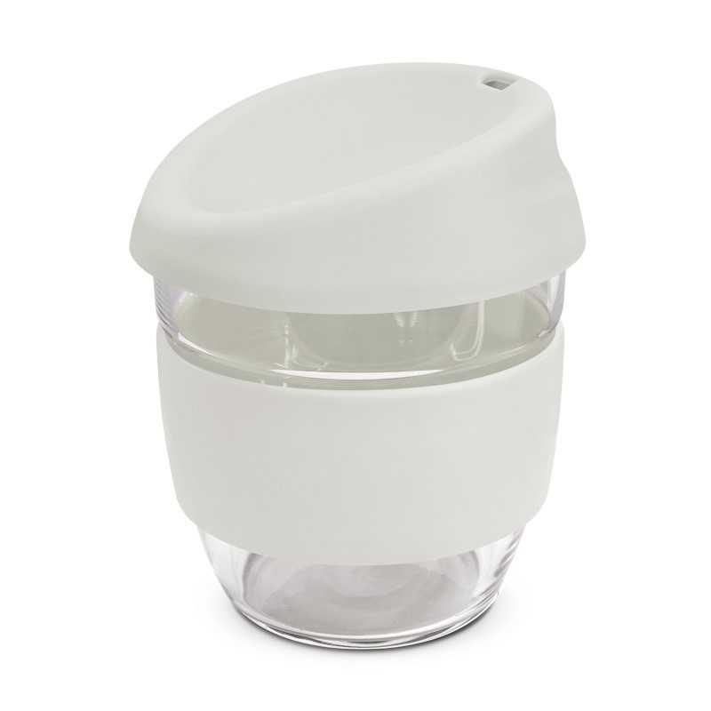 Elegant 250ml reusable borosilicate glass coffee cup with a secure push on plastic lid with silicone seal and a wide heat-resistant silicone band. Borosilicate is lightweight, exceptionally strong and shatter-resistant. It is a BPA-free choice for a clean, pure taste and is a natural alternative to single-use paper cups. The lid and band can be mixed and...