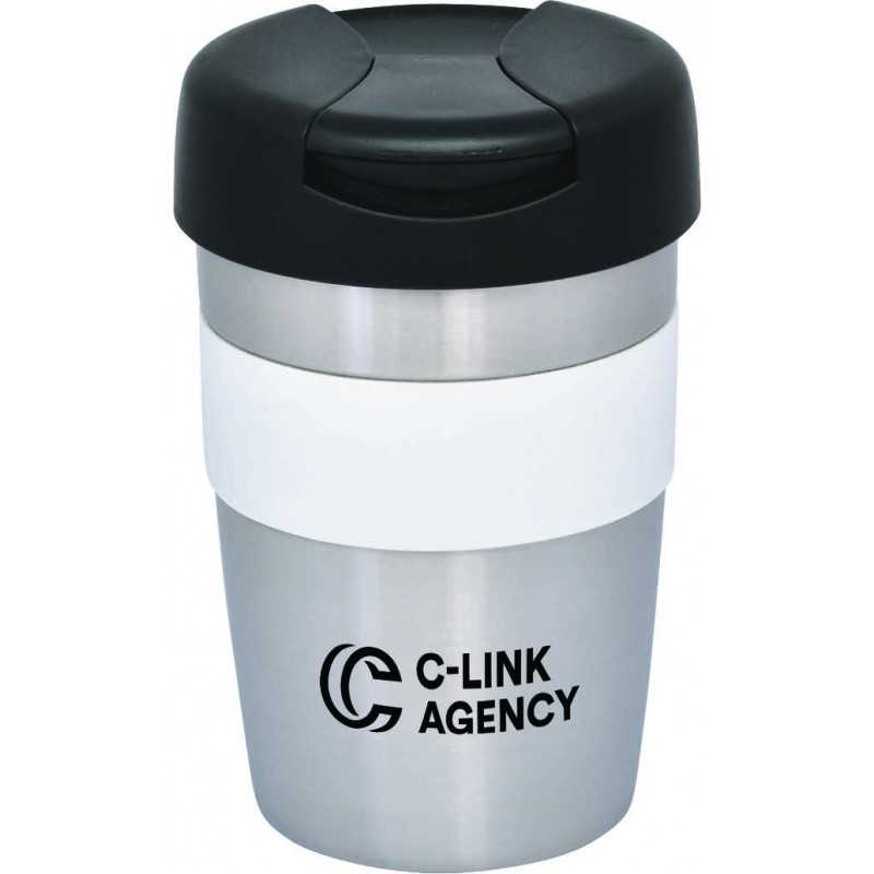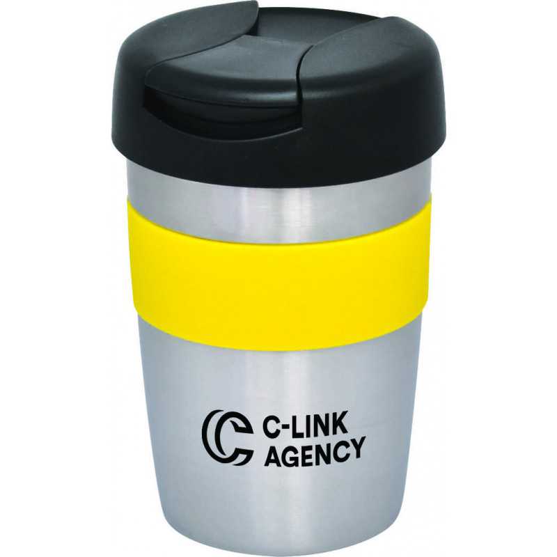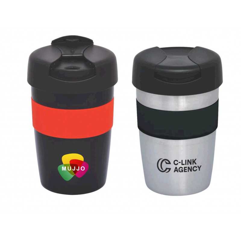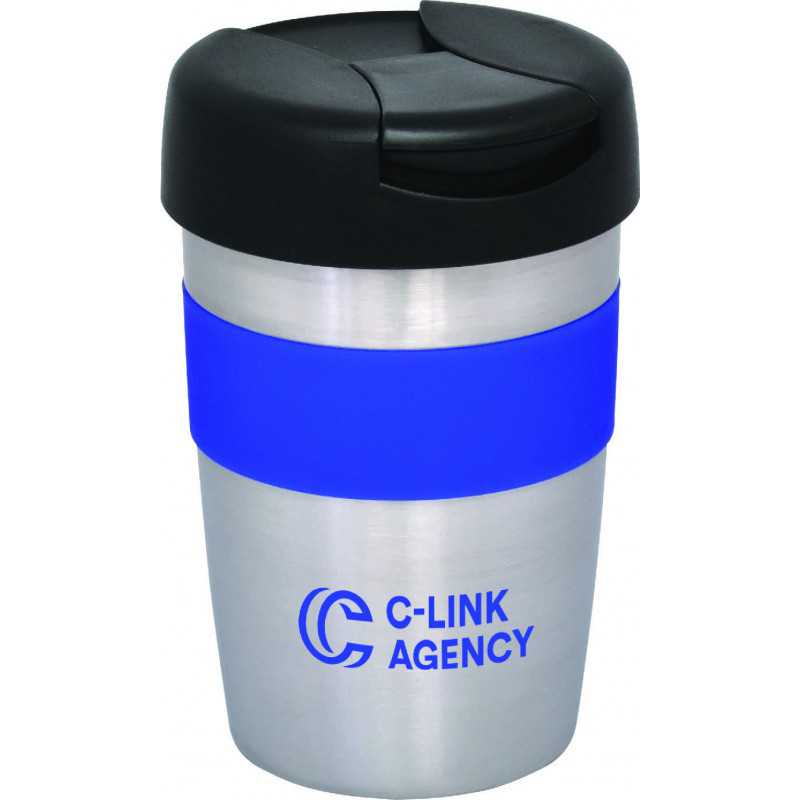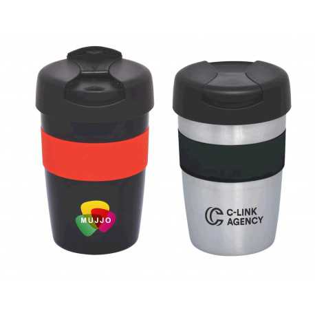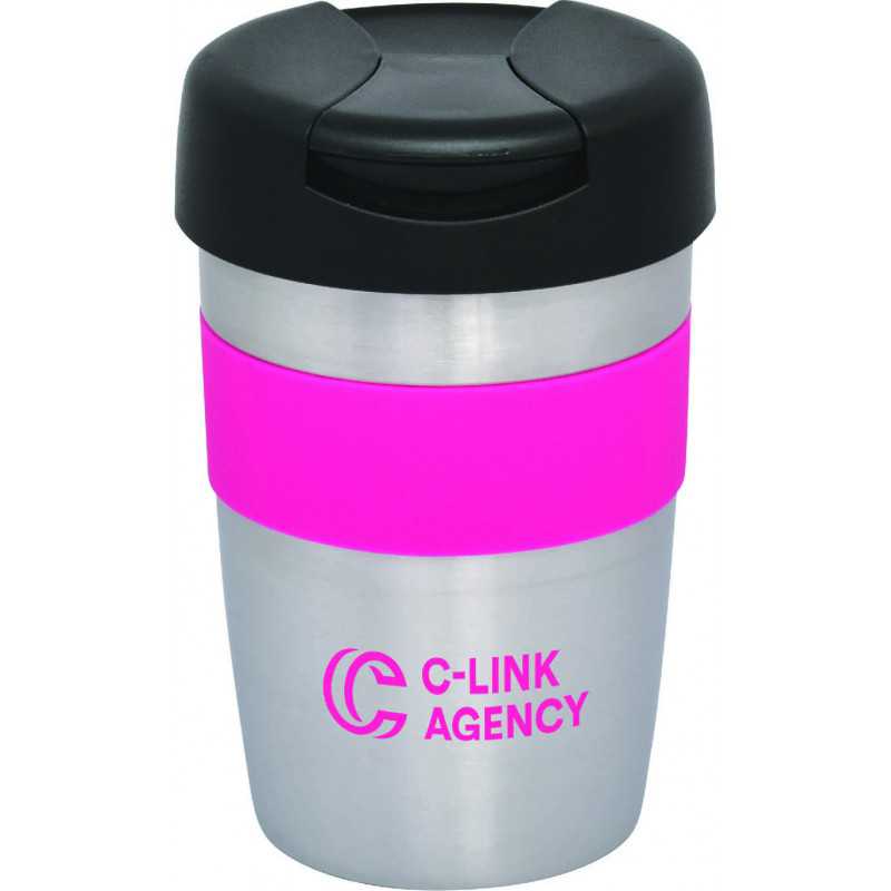 Premium 340ml double wall, vacuum insulated stainless steel cup which will keep drinks hot for up to three hours. It has a soft-touch silicone band and a secure screw on lid with a splashproof flip closure. The cup, lid and band can be mixed and matched in any colour combination from the standard colours at no extra cost. Up to five different colour...