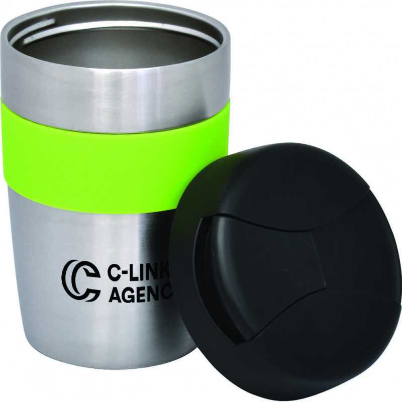 Premium 230ml double wall, vacuum insulated stainless steel cup which will keep drinks hot for up to three hours. It has a soft-touch silicone band and a secure screw on lid with a splashproof flip closure. The cup, lid and band can be mixed and matched in any colour combination from the standard colours at no extra cost. Up to five different colour...