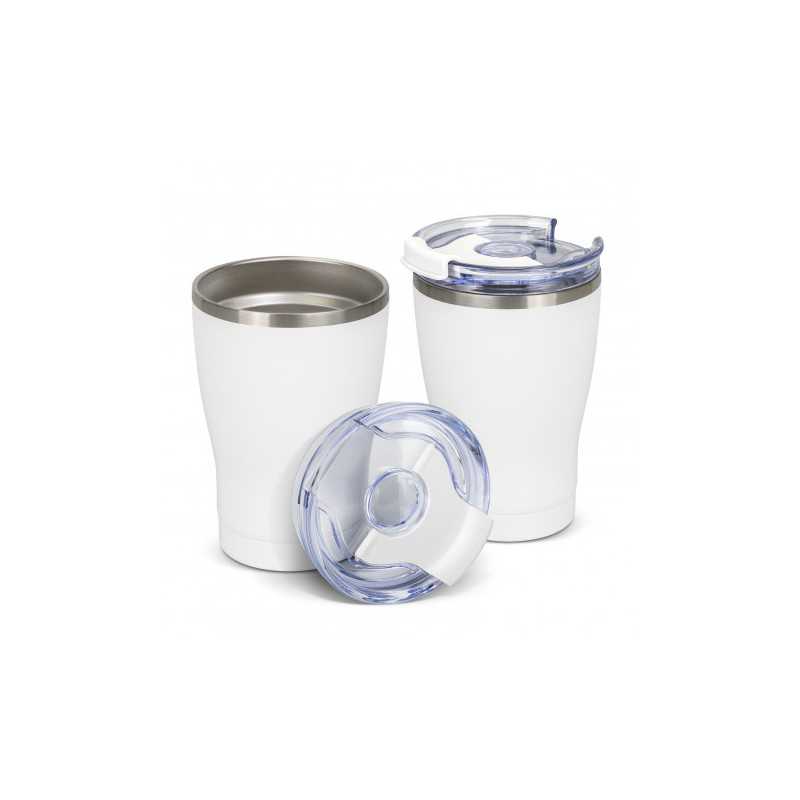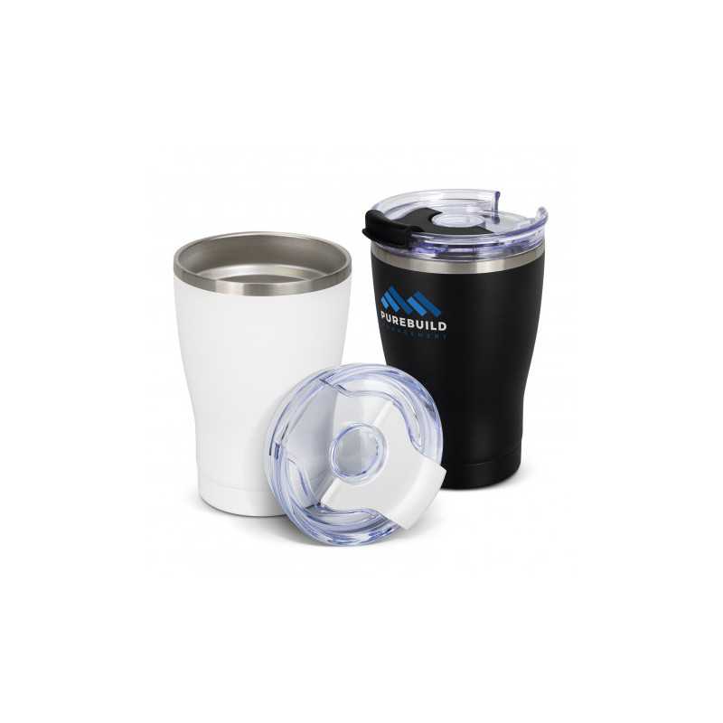 Crafted from food grade stainless steel, with a plastic inner. The Java Drop is the perfect 350mL cup for any lover of hot beverages. Available in a vibrant red or blue, or a classy white or black, the Java Drop is a fantastic and sophisticated product to suit the branding of any business. Our Java cup is packaged in a plastic bag only.