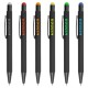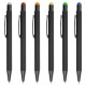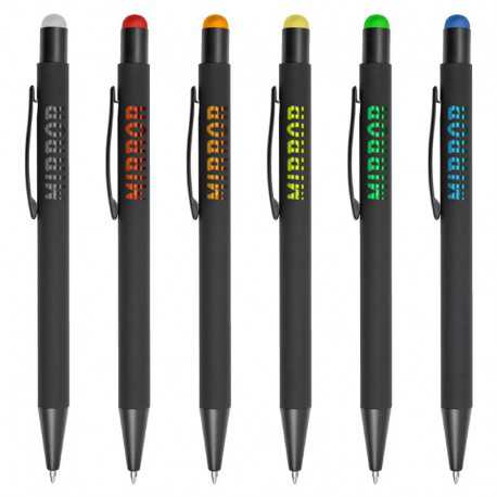 Soft feel, aluminium barrel ballpoint pen with black accents and coloured stylus. Writing distance: 2.1 kilometres.