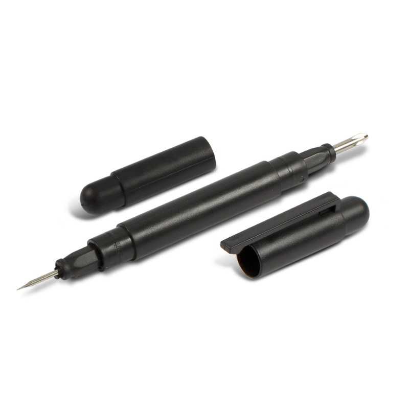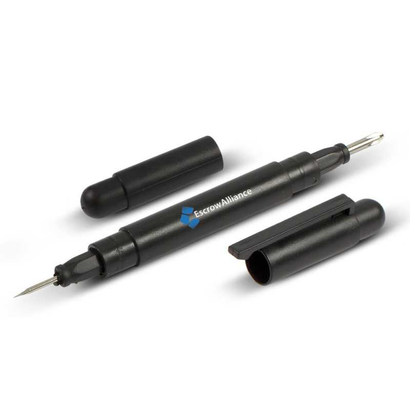 Mini promotional pocket screwdriver kit is a great advertising tool when pad and digital printed with your logo. It has two conventional and two Phillips screwdriver heads. The outer plastic holder acts as the screwdriver handle and has a magnetic port to hold the selected head in place.