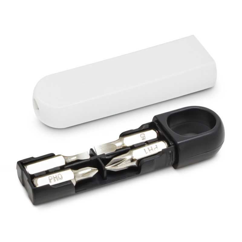 Mini promotional pocket screwdriver kit is a great advertising tool when pad and digital printed with your logo. It has two conventional and two Phillips screwdriver heads. The outer plastic holder acts as the screwdriver handle and has a magnetic port to hold the selected head in place.