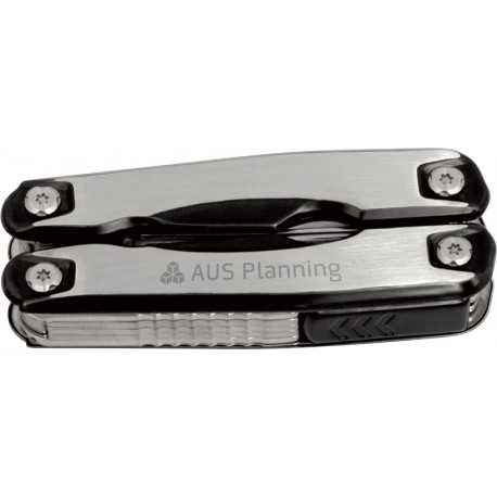 This 13-function multi tool is made with a high-gloss stainless steel handle and implements. It features a secure internal spring as well as a safety implement locking device that ensures the knife, screwdrivers etc. will remain extended until the unlock button is pressed. Available in gloss stainless steel with black trim and supplied in a deluxe nylon...