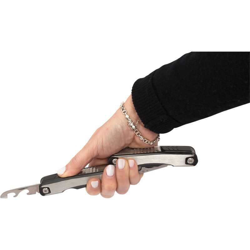 This feature-packed multi-tool has thirteen functions in a compact design. Supplied in a deluxe nylon pouch.
