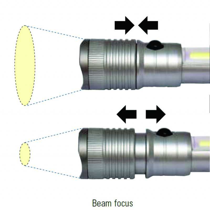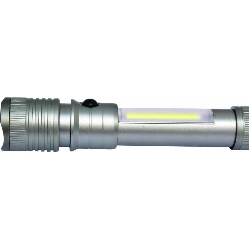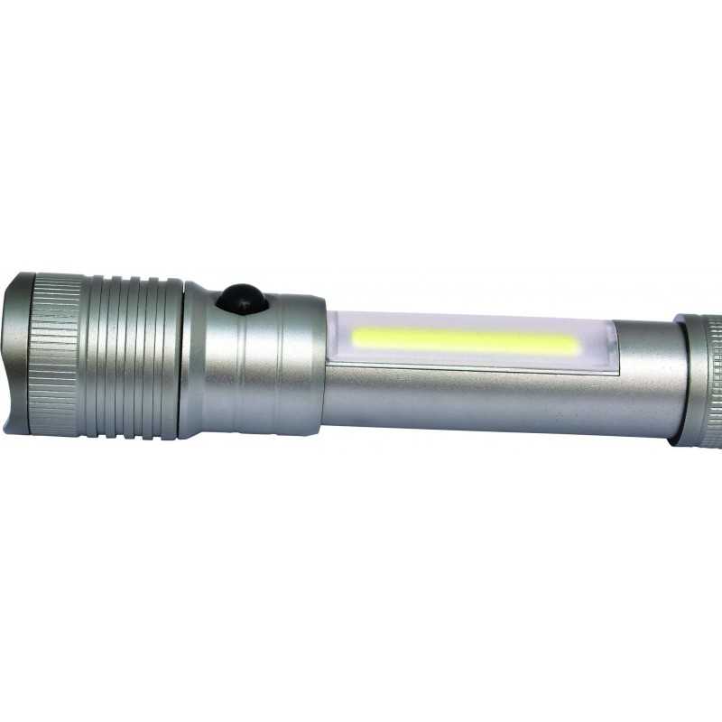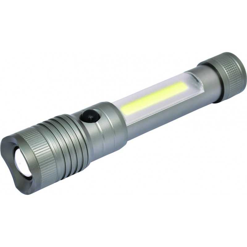 Super bright COB torch with soft feel rubber coating and handy carry strap. Easy to use silicone on/off button. Powered by 3 x AAA batteries included.
