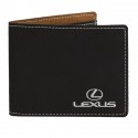 Traditional slim folding design with six card slots, two side pockets and one large bill pocket. Sueded Leatherette is made using PU material and is decorated using a special laser that removes the surface colour from the material. A secondary metallic colour has been hidden under the surface layer which is exposed during decoration. Black material...