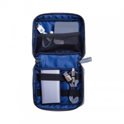 Large zippered carry pouch. Features 4 elastic loops and mesh pocket. Easy to store your electronic accessories. Keep your things in one safe place. Protects from dust and dirt. Small and compact fits easily into your carry bag or satchel. Material: Cotton, Linen, Nylon.
