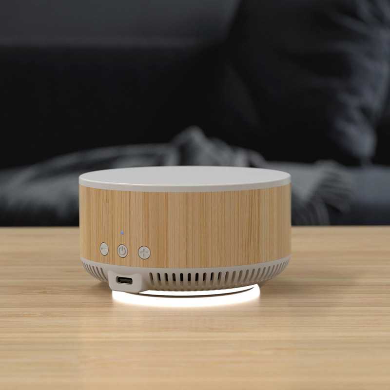The compact Muir bamboo speaker delivers high fidelity sound and provides hours of delightful music. This 3 Watt speaker has a changing LED that glows around the perimeter of the speaker and provides Aux and TF card inputs. Includes micro USB charge cable and user manual. Material: Bamboo, ABS. Specifications: Bluetooth Version: 5.0, Power Output: 1 x 3...